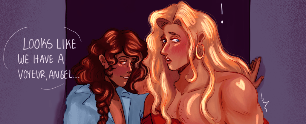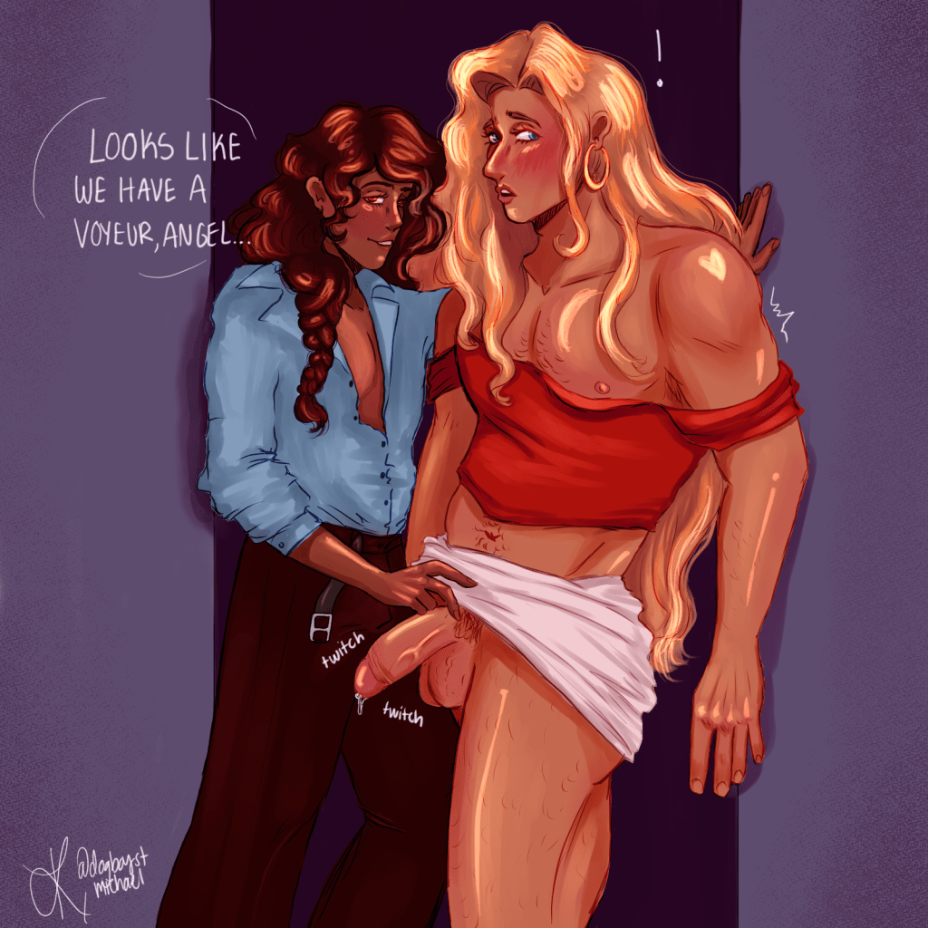 “Oho? Looks like we’ve got ourselves a voyeur, my angel.”